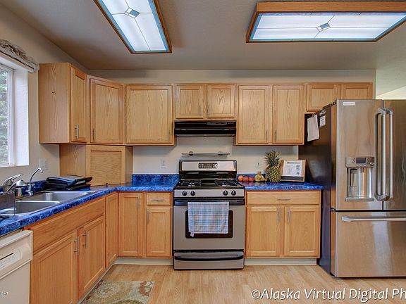 HUGE Garage w/ RADIANT HEAT!!! This unique home is in the heart of S ANC but close to everything & sits on a 1/2 ac lot w/ tons of privacy! House faces west and gets tons of sunlight. Light & bright living room w/ vltd ceil & skylights. Upstairs find a bonus room & walkout deck w/ SW exposure. Large master w/ private bath & vaulted ceil. Come check out this lovely home!
