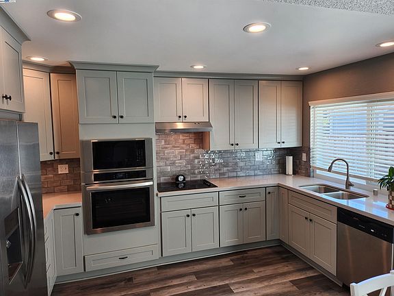 Beautifully remodeled kitchen and bathrooms. New interior paint, floors, dual pane windows, side yard access and concrete parking pad.