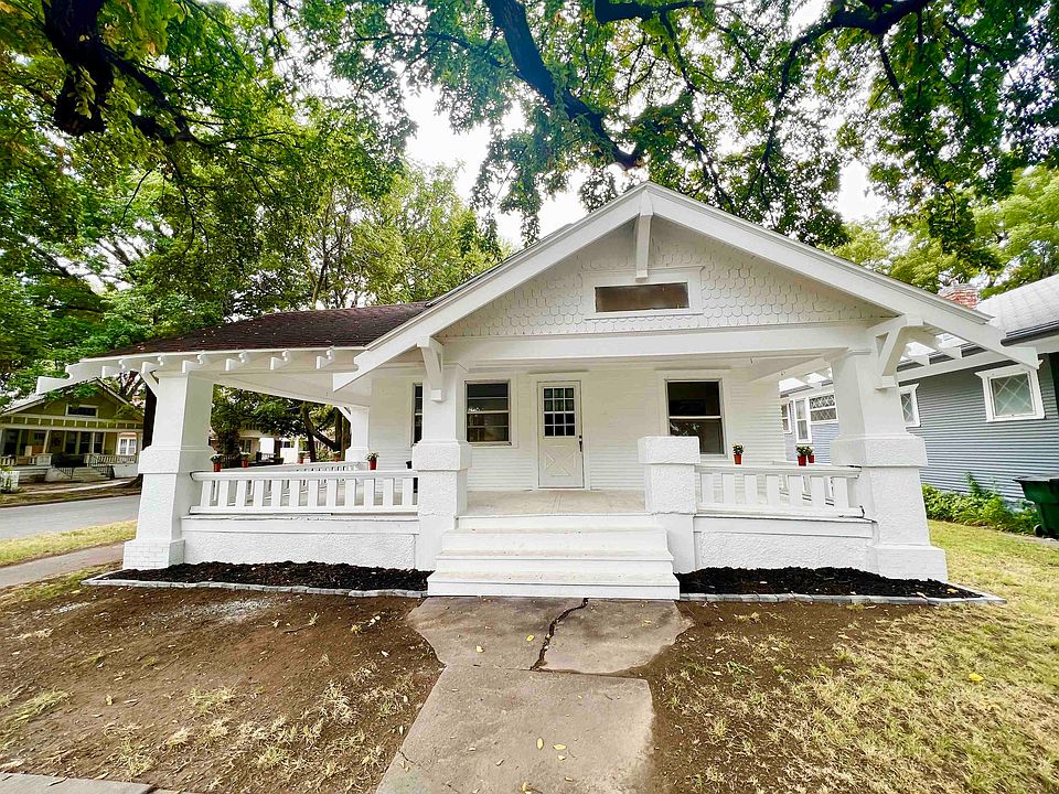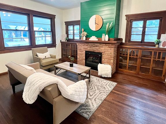 Step back in time and embrace the charm of this newly renovated 3-bedroom, 1-bathroom historic gem nestled near College Hill. This cozy home showcases a recent makeover, boasting freshly refinished hardwood floors and a new interior and exterior paint job that breathes new life into its classic character. All new wiring was added and new electric panel upgrade recently completed. Adding to its timeless appeal, the wrap-around porch offers great outdoor space. The modernized kitchen includes new tile, quartz counters, custom under mount sink with cutting board and roll out dish dry rack, and a pot filler above the stove. The bathroom is completely remodeled with custom tile that adds to contemporary feel without compromising the home's timeless appeal. The property includes a 2-car garage and a fenced yard for added privacy and security. Laundry is located in the basement where you will also find a finished out bonus room perfect for an office or game room. But what truly sets this home apart is the enchanting electric fireplace insert that adds a touch of elegance and warmth to the living space, making it an absolute must-see for those seeking a perfect blend of history and modern comfort.