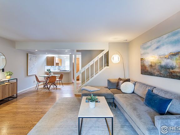 This is the townhome you have been waiting for! Bright, sunny and sparkling clean, this home has many charming features throughout. The main level has an open floor plan with light wood floors, a wood burning fireplace and a sunroom/office that opens to a private patio. The kitchen has new stylish quartz counters and new tile backsplash, vaulted ceilings and a skylight to bring in the sunshine. On the 2nd level you will find a large master bedroom with adjoining sitting room, a second bedroom with walk-in closet, a full bath and laundry area. There are newer laminate floors on the 2nd and 3rd levels. There is a larger bedroom, a small private office or meditation room and 3/4 bath are on the third level. To top it off, there is a 1 car garage and a parking space in front of the garage. Pet friendly community, bring your dog and cat. Don't miss this perfect combo of location, privacy, and convenience. Everything you love about Boulder is here!