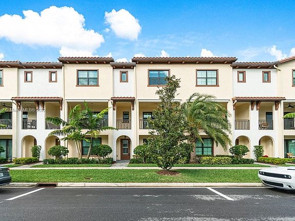 Beautiful 2019 Model B townhouse with many upgrades! Gorgeous Laviana Cinderwood Glazed Porcelain floors throughout all main living areas and carpet throughout 3rd floor / bedrooms. Spotless and move-in ready. Enjoy cooking and entertaining in this huge kitchen with GE Stainless Appliances, beautiful 42" cabinets with crown moulding, Center island and kitchen counter-tops are topped with Quartz-granite. Impact resistant windows and doors. White plantation shutters throughout. The 1st floor room use as 4th bedroom or den. Community pool and other great amenities, shopping and restaurants. Easy access to I95 and the Florida Turnpike. One time capital contribution of $3300 paid at closing from Buyer. Open House 2/21 & 2/23 from 12pm -2:30pm.