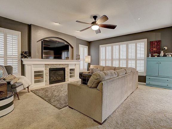 Beautiful 5 bed, 3.5 bath in The Meadows! Boasting the best upgrades with the custom wooden shutters in the upgraded living room with fireplace and custom woodwork. Eat-in kitchen offers mountain views, 42" cabinets, stainless steel appliances, & double ovens. The backyard has a professionally installed paver patio & seating area. The main floor has a formal dining room with bay window, guest bath, & laundry room. Upstairs there is a cozy master bedroom with an accent wall customized with beetle kill pine & unobstructed mountain views. Master has a 5 piece master bath, soaking tub & walk in closet. Three more bedrooms occupy the 2nd floor. The finished basement features plenty of room to enjoy movies or game time. The basement includes a full bedroom & bathroom, storage, living area & bonus room. The 2.5 car garage has built-in storage units & plenty of room for your workbench. Meadows neighborhood offers access to swimming pools & is within walking distance to exceptional trails.