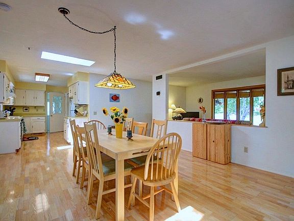 Spacious and sunny ranch home with newer oak engineered floors, huge dining with skylights for family gatherings leads to newer sun room with vaulted ceiling,closes off French pocket doors for quiet time. Walkout to deck,stairs to wooded yard/adjoining park with brick patio under from walk-out office. Walk/bike to pool,library, shops, schools.Easy drive to Madison,close to winter skiing,summer golfing.New garage epoxy floor,walkout workshop, tons of storage.Many updates;floors,AC,bathrms,sunrm,gas stoves.