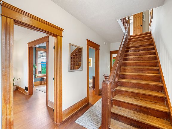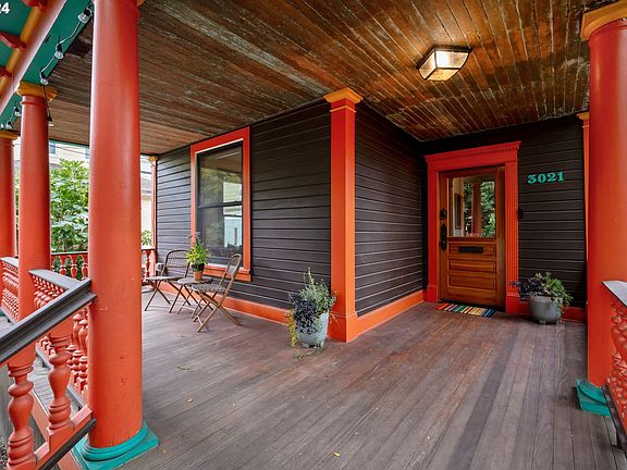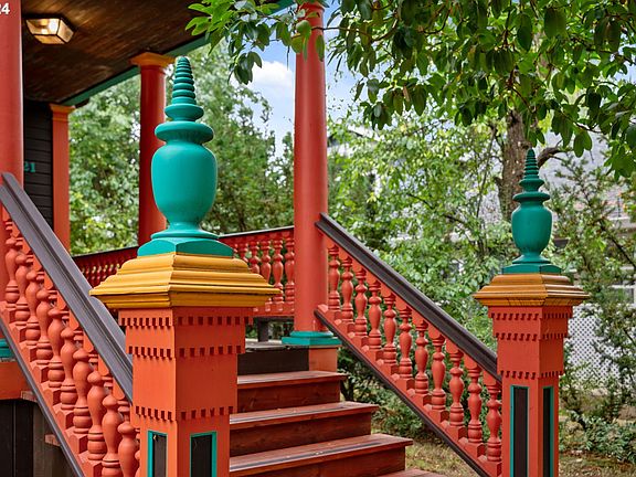 Your own piece of heavenly history! This bespoke, eclectic late era Victorian heritage home with Eastlake/Stick architecture, a contributing factor to the Eliot Conservation District, makes a splash- adorned and embellished, she’s a sensation and a classic! Admire your home’s eye candy detailing, as you watch the seasonal colors change and the world mosey by, from your perch on the covered porch. Enter the welcoming recently painted airy interior. The open foyer is awash in natural light. The high ceilings, wood floors and natural trim invite lively celebrations and peaceful hang outs. A dining room with space for your whole crew! The handsome kitchen has the warm glow of stained wooden floor-to-ceiling cabinets with ornamental crown molding, an apron style farm sink, slab countertops and stainless steel appliances. What a luxury to have a main floor flex space- blow out a wall to expand your fantasy kitchen, have a culinary prep room or enjoy a main floor family room where folks can sip while chatting with the chef. You decide! Main level laundry room with updated appliances and wainscotting and thermal casement windows overlooking the garden. Rustic main floor water closet. The bright, open staircase leads to generous bedrooms and a renovated bathroom. Keep the sneezes at bay with carpet-free living and stay comfy: newer central AC/high efficiency gas furnace, plus thermal windows with top down shades and ceiling fans. The fenced backyard has a festive patio and plenty of southern sunshine to nurture your flowers, fruits and veggies. What?! Yep, you have your own mural! Off Street parking with a level 2 ev charging capability. This quiet historic residential area is surrounded by cool stuff- the Williams/Vancouver Corridors, Dawson, Lillis Albina and Irving Parks, Matt Dishman Community Center, the Wonder Ballroom, Portland Institute for Contemporary Art - PICA, bus and streetcar stops and more! [Home Energy Score = 4. HES Report at https://rpt.greenbuildingregistry.com/hes/OR10193038]