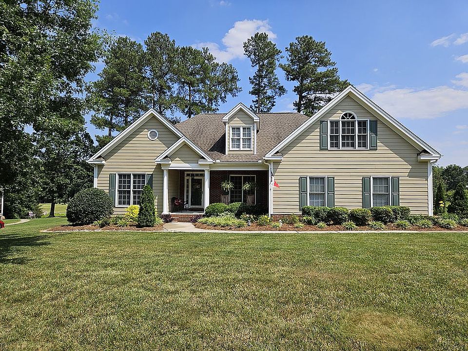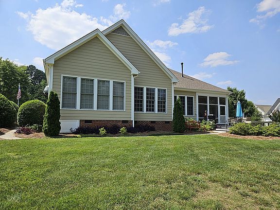 Beautiful ranch with Hardie Cement Board Siding, 3 bedrooms, 2 1/2 bathrooms, on .67 acre lot located beside 13th tee box of River Ridge Golf Course Community. Dramatic entry foyer and formal dining room, with crown molding in both, as well as kitchen and master bedroom. Greatroom has fireplace with gas logs, and room opens to casual dining area and kitchen, with granite countertops and stainless steel appliances. Split bedroom floorplan offers plenty of privacy in spacious master suite, which includes a large walk-in closet, and bathroom with soaking tub, walk-in shower, and vanity with two sinks. Two additional bedrooms share a Jack & Jill bathroom. There is small pantry and laundry closet, and 2 car garage. There is a finished room over garage which can be a fourth bedroom or a wonderful playroom. Flooring includes carpet in the bedrooms and bonus room, hardwoods in common areas, and tile in bathrooms. The .67 acre lot has good sized fire pit, flag pole in front yard, and 10 zoned irrigation system, and landscape lighting enhances the beauty of the home at night. Enjoy sitting on the enclosed screened-in porch or on the deck and watch the golfers tee off. WE WILL PAY A 2% FEE TO BUYER'S AGENT AT CLOSING.