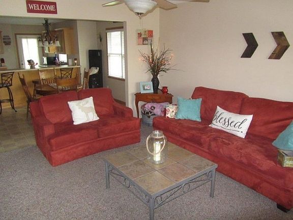 Open floor plan with living dining and kitchen area. Big snack bar with lots of counter tops. Convenient 5' pantry in the kitchen. All kitchen appliances and washer/dryer. You'll enjoy the Nice covered porch off the kitchen. The master suite has a big bedroom, a very nice bath with double bowl vanity, and a HUGE walk-in closet. Nice sized second bedroom and a large guest bath with lots of storage. This very nice home is completed with a BIG Two car garage with pull down ladder for attic access and nice landscaping. Built by Home Builders Plus. RE Taxes are with no exemptions.