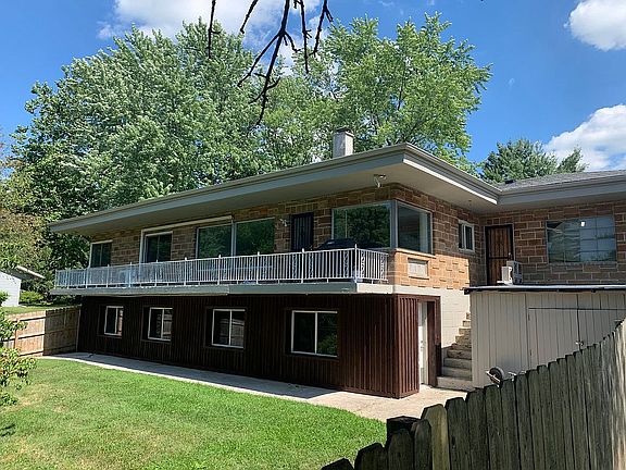 All concrete, very energy efficient, Contemporary Style Home with walk-out basement. This home offers features unique for in-town living enjoy outdoor living with spacious 1 acre lot and balcony that spans full length of home. Along with a convenient location, this home boasts a new roof, AC and walk-out basement that includes a bonus kitchenette area and would make your ideal family rec room. Living room with brick accent wall opens to dining & kitchen areas and a separate front sitting room features built-in shelving and fireplace. Also an attached 2 car garage and additional storage building.