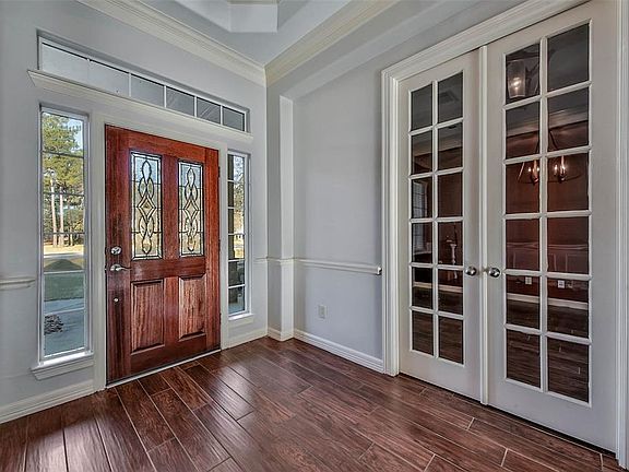 Stunning 1-story home sits on over 1 acre estate lot! Hardwood flooring, high ceilings throughout this open floorplan. Private study situated at the front of the home away from the hustle and bustle. The formal dining is open to the living areas, yet feels private- perfect for entertaining. Spacious living room with stone accented gas-log fireplace, built-in media center and large windows overlooking the backyard. The kitchen is a cooks dream with plenty of cabinets and granite countertops, island and built-in appliances including double oven and gas cooktop. The master suite is a true retreat with sitting area complete with fireplace, en-suite bath featuring His & Her sinks, jetted tub, separate walk-in shower & walk-in closet. Great location close to both I-45, The Woodlands, Hardy Toll Road & The Grand Parkway.