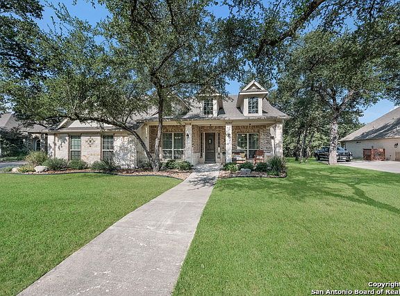 Spectacular one-story, traditional-style home with 4 beds/3.5 baths/3 car garage, 3087 sqft in Setterfeld Estates 1. Superb living room w/elegant fireplace, separate dining, study/office, media room and open floor plan w/high ceilings. Kitchen w/plenty of counter space, self-cleaning oven,cook top and reverse osmosis water filter system. It also has two eating areas, island and walk-in pantry. Spacious master bedroom w/wood floors, sitting area,walk-in closet and ceiling fan. Master bath w/separate vanity, separate shower and garden tub. Enjoy the outdoor covered patio w/family & friends. Comal ISD. WELCOME HOME!