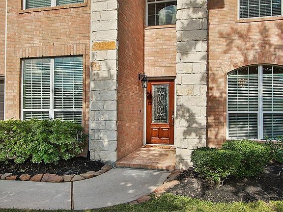 Beautiful WATERFRONT home in the popular gated community of Legends Ranch! Situated on a quiet culdesac lot with great water views. As you enter you will notice soaring ceilings, 2" blinds, formal dining, office, large den and walls of windows. The open floor plan offers a spacious kitchen with tons of cabinets, solid surface counters, tile back splash and gas cook top all opening to breakfast and living. Great entertaining space with natural light, corner fireplace and views overlooking the backyard and water. Private master retreat down with bay window, double vanities, Jacuzzi tub, separate shower and walk in closet. Upstairs boast enormous game room, media and large secondary rooms with lots of closet space. This community is zoned to new Grand Oaks high school and offers an array of amenities including pools, splash pad, lakes, trails, basketball & tennis courts. Recent Shaw carpet 2018 installed.