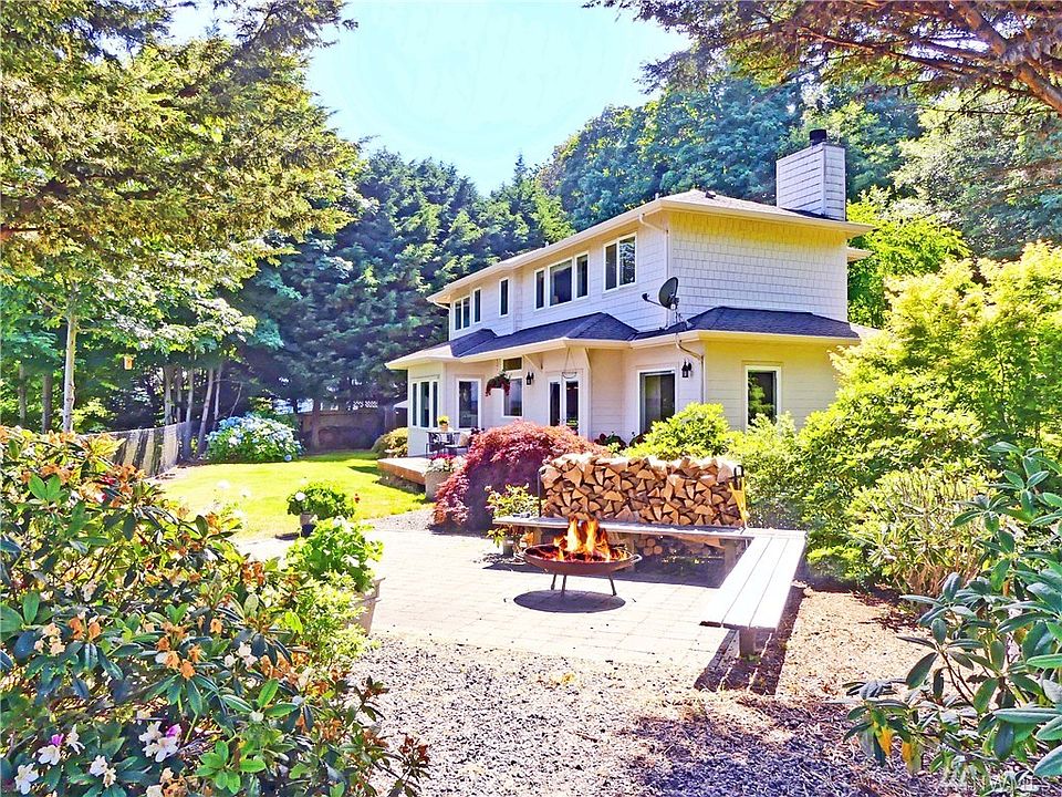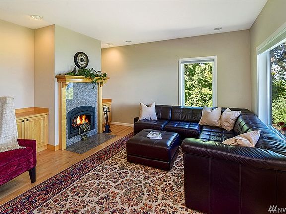 Outstanding hi-bank waterfront View home w/Panoramic views of Puget Sound & shipping activity, the night light of Edmonds. Located at the end of a meandering & idyllic woodland drive & just minutes from Kingston & its current & future ferries to Edmonds/downtown Seattle. Enjoy views of blazing Sunrises, almost all of the Cascade range from Rainier to Baker & enjoy the elegantly appointed home: Maple cabinets & Oak floors, 100+ yr "Fiddle back" maple Mantle, granite topped counters & hi ceilings