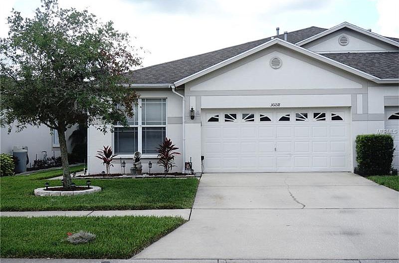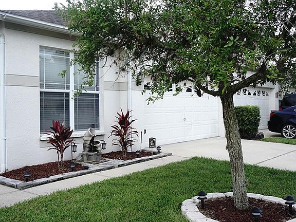 In high demand villa in gated community of Longleaf in Meadow Pointe. This open floor plan villa features 3 bedrooms, 2 full baths, den/office/bonus room, and 2 car garage. Fantastic oversized screened lanai is perfect for outdoor living and backs up to conservation area with serene views. There is fresh paint throughout entire home, upgraded fixtures, wood laminate flooring in all bedrooms, tile in bathrooms, ceiling fans in bedrooms, and smart light features in bathroom and laundry rooms. The kitchen features a large pantry, tile backsplash, and overlooks the dining and living room. The owners retreat offers walk in closet and tranquil conservation views. The master bath includes dual vanities, large garden tub, and separate walk-in shower. All roofs in Longleaf where replaced in 2012/2013. Maintenance includes exterior painting every 5-7 years, lawn care, and painting/roof reserves. Reclaimed water for irrigation. Meadow Pointe offers many amenities such as Clubhouse access, Fitness Center, Community Pools, Tennis & Basketball Courts, and Playgrounds. Convenient access to shopping, dining, retail mall, outlet mall, and interstate access. CDD included in tax bill. Highly rated elementary, middle, and high schools.