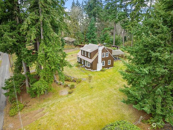 This one will go quick! Partial view of Puget Sound that will not likely change. This is a lovely vintage Craftsman style home on a shy acre homesite in a quiet, hidden street. A neighborhood enclave of view and waterfront homes that are in the $1M-$3M price range. Bring your imagination and ideas for substantial gain via sweat equity. The systems have been maintained over the years with insulated windows, roof, electrical, kitchen cabinetry. A diamond in the rough, yet so charming. If vintage Craftsman is your style, you must see this home. Main floor bedroom, hardwood flooring through most of the home and a fireplace. On the grounds you’ll find a garden shed, the old chicken coop and a tiny log playhouse nestled in the back yard trees.
