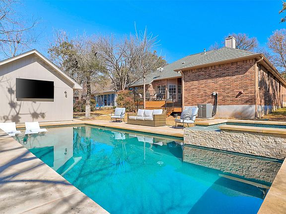 Nestled in one of Georgetown’s most coveted locations, this single-story home offers the space, flow, and lifestyle we all crave. The main residence features 3 bedrooms and 2.5 baths, yet lives far larger thanks to three distinct living areas—formal living, family room, and game room—plus both formal dining and a breakfast area, with a kitchen breakfast bar ideal for gathering. No carpet anywhere. Rich hardwoods, tile, and travertine stone run throughout the home, enhancing its clean, timeless appeal. The open floor plan is flooded with natural light, and in the spring it feels like you are living in a private treehouse retreat, with serene views that make blinds unnecessary. Step outside to your private backyard oasis complete with an in-ground pool, hot tub, oversized deck, and fully fenced yard—perfect for entertaining, relaxing, or everyday enjoyment. The pool house is currently being used as a private exercise studio with a full bath, featuring a stunning tiled shower and vanity—ideal for guests, fitness, or a serene home office space. The primary suite is an at home spa escape, featuring marble-like flooring, separate vanities, dual closets, and an indulgent steam shower you’ll never want to leave (and you won’t have to because there is a tankless hot water heater). Location truly sets this home apart. Just a golf cart ride to Georgetown Country Club, moments from the San Gabriel River, and surrounded by hiking trails, biking trails and community parks. Enjoy easy access to DB Wood, Rivery Blvd, Williams Drive, and Hwy 29 via neighborhood roads—making traffic jams a thing of the past. Zoned to Village Elementary, Benold Middle School, and Georgetown High School. This is more than a home—it’s a lifestyle. Call today to set up a private tour. Owner is Real Estate Agent