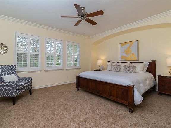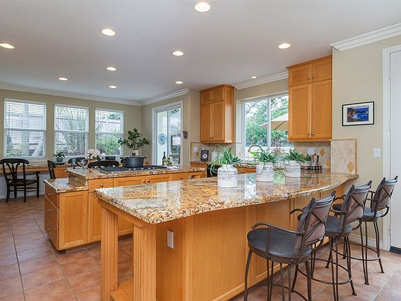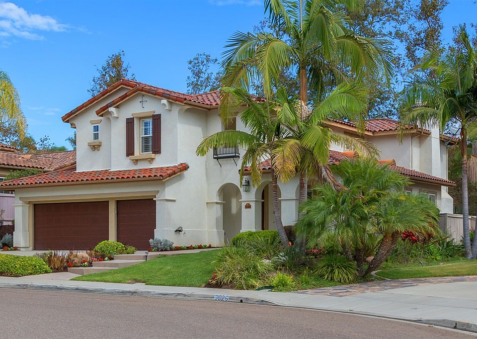This immaculate home with 5 bedrooms & 5 ½ baths (1 bdrm down) is located in La Costa Valley on a desirable cul-de-sac. All bedrooms are en suite. Soaring two-story ceilings, bright rooms with plantation shutters and new flooring throughout. Family room has cozy fireplace, large kitchen with granite counters, sunny breakfast area, and walk-in pantry. Office has dry sauna and can be converted back into a bedroom. Extra large master suite located in its own private wing. Fully owned 4.2 kW solar system.