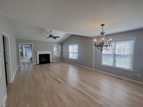 2 bedroom 2 bathroom ranch in Flowers Plantation. Large master suite with cathedral ceilings, large jet tub and separate walk-in shower. Freshly painted throughout the home. Refinished hardwood floors and new carpet in the bedrooms. Open kitchen, dining and great room floor plan with cathedral ceiling and LP gas fireplace. Sunroom is directly off the great room and leads out to deck with privacy screening. Beautiful woods back up to home, creating a lot of privacy and a quiet spot to entertain. New roof was installed in 2022. The home includes an attached one car garage with tons of shelving and even large storage platform above the garage door. Great location in Flowers Plantation with easy access to trails, shopping centers, and downtown Clayton. Don't miss out on this beautiful home!