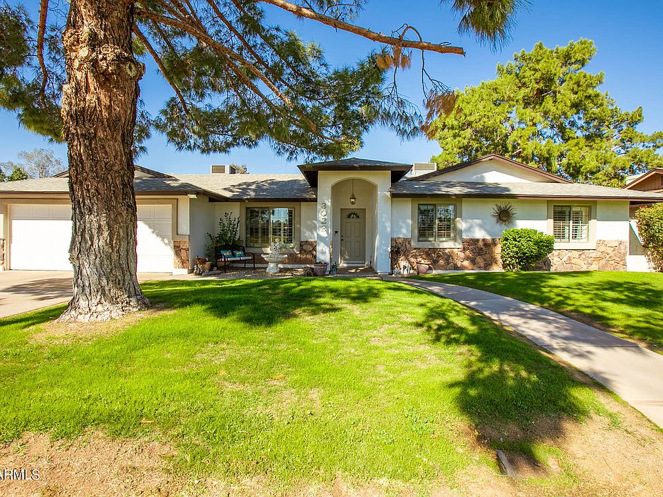 TWO MASTER SUITES. One completely handicapped access with roll-in shower and wide doorways. Updated kitchen with stainless appliances. Double oven. Primary master has separate jetted 2-person tub and walk-in shower, walk-in closet, two sinks and exit to the back yard. Awesome fireplace in the family room. Lots of lush plants and gardening space. Two-car garage with direct access from the house. Huge storage area just off the kitchen. Newer windows. No HOA. Directly across the street from a park.
