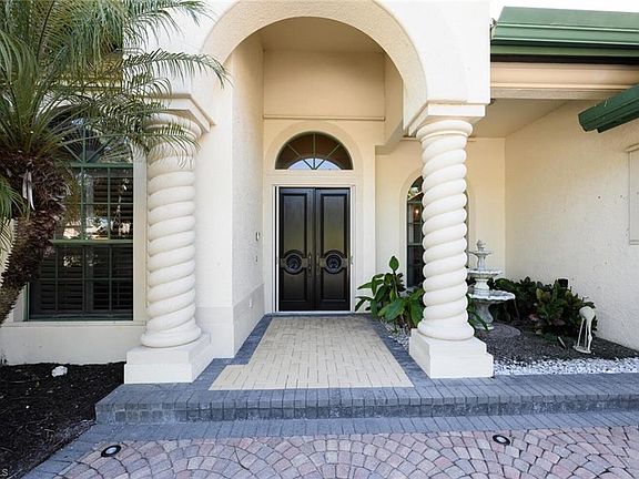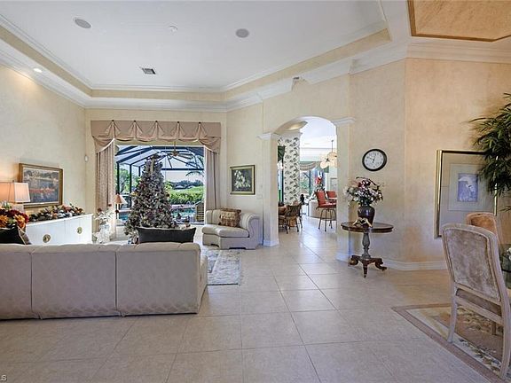 Regal in design and grand in proportion, this residence exemplifies timeless architectural beauty and offers a remarkable foundation for personalization. Perfectly positioned on a prime lakefront lot, the circular brick-paver driveway, manicured landscaping, and stately façade set the stage for what awaits within—soaring ceilings, exquisite mosaic inlay tile details, and walls of glass that showcase breathtaking lake views and bathe the interiors in natural light. The grand foyer transitions seamlessly into the formal living room, where tray ceilings elevate the residence’s sense of scale and sophistication. The spacious kitchen is a dream layout to modernize, featuring a large island, wraparound breakfast bar, and abundant cabinetry. Just off the kitchen lies a bar area additional cabinetry, and a wine cooler—perfectly positioned within view of the formal dining room, making it ideal for entertaining guests or hosting grand fêtes. The kitchen offers an eat-in dining area attached to a large Great room provide inviting spaces for casual dining and relaxed gatherings, all overlooking the lanai and lake beyond. Corner pocketing sliders open to the screened lanai, where a sparkling pool is surrounded by both undercover lounging areas for shaded comfort and open-air spaces for sunbathing. The primary suite continues the theme of elegance, offering private lanai access, mosaic inlay tile accents, and a sprawling ensuite bath with a luxurious pass-through “car wash” shower, soaking tub, dual vanities, and makeup station. The guest rooms, too, are given the attention they deserve, including a guest suite with French doors and a walk-in closet, along with additional spacious bedrooms that ensure comfort and privacy for family and guests alike. Ideally located within Kensington Golf & Country Club, just minutes from Mercato, Waterside Shops, the Naples Philharmonic, and Gulf beaches, this home offers fantastic bones, timeless appeal, and enduring architectural character—a rare opportunity to refresh a classic or reinvent it for modern living.