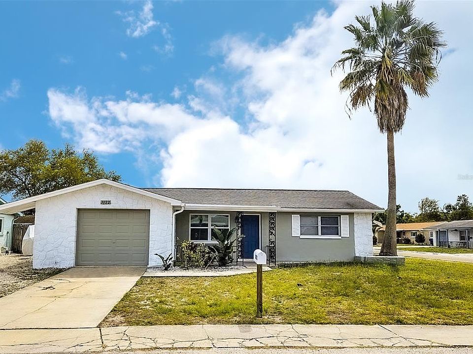 Recently updated home, open split plan 3 bedroom and 2 full baths, New Roof installed 2024, wood tile plank flooring throughout home, new kitchen cabinets and countertops, bathroom vanity and tile, fans, fixtures, freshly painted interior and exterior. New AC 2021, New hot water heater 2023, oversized 1 car garage with work bench. Very large fenced corner lot for privacy or recreational vehicles. No deed restrictions, No HOA, Close to Anclote State Park beach and boat ramps, downtown Historical Tarpon Springs and Sponge Docks. Great location off Alternate 19 to live the Florida lifestyle. Close to shopping, dining and entertainment!
