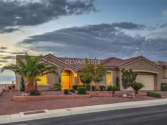 STUNNING VIEWS...MOUNTAIN, VALLEY AND STRIP! Popular Sun City Anthem Arlington model featuring an extended great room with picturesque views from endless windows and featuring a cozy fireplace. Gourmet kitchen with granite countertops, stainless appliances & custom cabinets. Master bedroom separate from other bedrooms. Extensive tile and like new carpeting. Pebbletec patio, walkways and driveway. This home has been meticulously maintained.