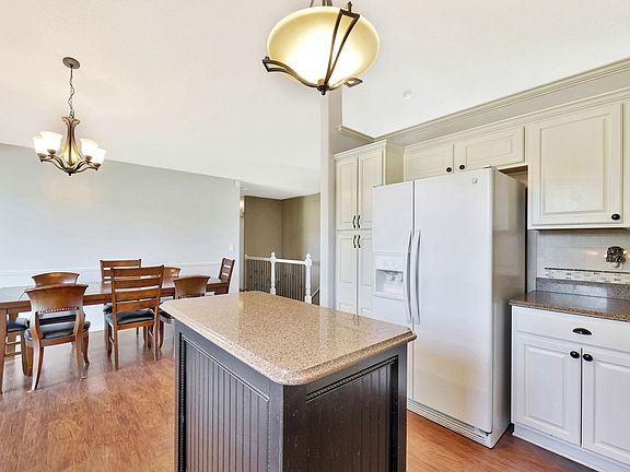 This stunning home in Maize school district boasts a blend of modern luxury and practical convenience, making it an ideal retreat for its lucky occupants. Nestled in a cul-de-sac on a huge lot, the freshly exterior painted residence exudes curb appeal. Inside, the spacious layout unfolds with four bedrooms and a partially finished fifth, offering ample space for both relaxation and productivity. The heart of the home lies in its expansive kitchen, complete with a central island, abundant cabinets topped with granite countertops, and a view of the tranquil waters beyond. Entertaining is a delight with a large deck, half covered for shade and half open to the elements, providing the perfect setting for gatherings. New carpet graces the main floor, while the basement boasts luxurious new flooring, enhancing both comfort and style. Two gas fireplaces, one in the living room and another in the basement, offer warmth and ambiance on chilly evenings. The master suite indulges with double sinks, a large soaker tub, and a generous walk-in closet, while main floor laundry adds practicality to daily life. With a three-car garage completing the package, this home seamlessly combines elegance, functionality, and serenity.