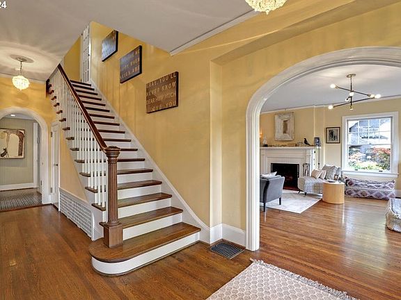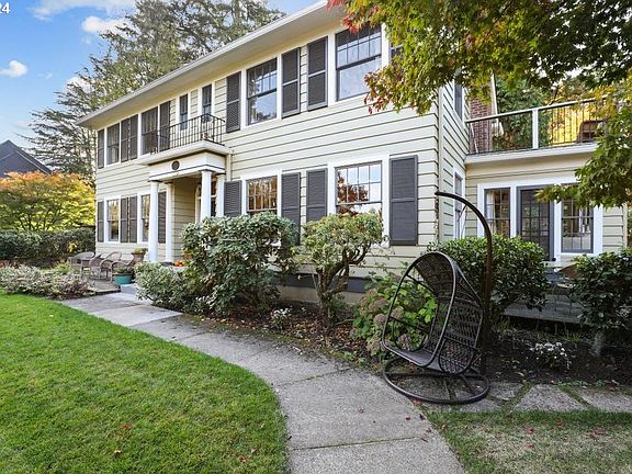 This beautifully restored Roscoe Hemenway center-hall Colonial combines classic charm with modern comfort, showcasing abundant natural light and original architectural details. The spacious layout includes large rooms with high ceilings, a chef’s kitchen, a sunroom with heated tile floors, a wood-burning fireplace, graceful arches, leaded glass, and hardwood floors. The home features four bedrooms and 3.5 baths, with a generous primary suite offering an en-suite bath, triple closets, a dressing room, and balcony access with Forest Park views. The second and third bedrooms share a Jack-and-Jill bath, while the fourth bedroom has a private bath. The second floor includes an office, laundry room, and ample storage.Set on a double, level lot, the property is ideal for entertaining, with patios on three sides and a lush, private backyard bordered by mature maple trees and a tall hedge. An attached two-car garage with original carriage doors adds to its appeal, while a full-height, dry, unfinished basement—retrofitted for earthquake safety—offers an additional 1,800 sq ft, perfect for an ADU or guest apartment with private entry via the exterior staircase. Recent updates include a new roof, fresh interior and exterior paint, and a new furnace, making this home move-in ready. Located on a quiet dead-end street, just blocks from 23rd Avenue and Forest Park, it offers a peaceful yet accessible urban retreat. [Home Energy Score = 1. HES Report at https://rpt.greenbuildingregistry.com/hes/OR10234073]