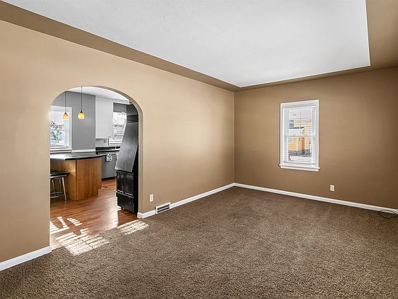 This charming full-brick exterior home boasts historic character and timeless appeal, making it the perfect starter home. The brick exterior provides a maintenance-free exterior, ensuring lasting durability and low upkeep. When you enter the home, you'll be struck with the living room open to the dining area and kitchen. In the dining area, you'll find a wood-burning chimney and brick wall, adding just the right charm to the home for entertaining. On the main floor are two spacious bedrooms and a bright full bath, complemented by original details, including beautiful hardwood floors that enhance the home's inviting atmosphere. The basement features a second bathroom and an egress window, providing potential for additional living space—ready to be finished to suit your needs. The dry basement is in great shape, offering ample storage or the opportunity for future expansion. Outdoors, enjoy the privacy of a fully fenced yard, ideal for pets, gardening, or relaxing.