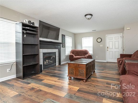 Beautiful home with upgrades throughout on a private cul-de-sac lot! Home opens with gorgeous new wood plank flooring throughout. Large living room with gas fireplace and open plan into dining area. Tons of windows provide entire space with natural light. Fully remodeled kitchen w/ soft close wood cabinets, exotic granite countertops and SS appliances. Upstiars find oversized primary bedroom with updated en-suite including new marble vanitiy and brand new toilet. Additional 3 bedrooms and updated full hall bath perfect for family and guests. Entertainers paradise out back with a beautifully landscaped and fully fenced in space. Patio and large built-in firepit perfect for fall evenings. Rock path leads through to back area with mature trees. Huge storage building is powered and insulated with picturesque front porch. Community amenities include walking trails, 2 playgrounds, and pool. Conveniently located near I-485, HWY 74. UPDATES: new HVAC system. SELLER HIGHLY MOTIVATED