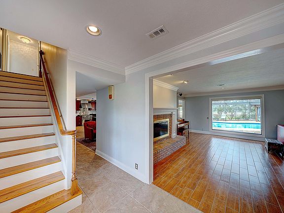 - Interior: Fireplace Gas, Ceiling Crwn Molding, Floor Hardwood, Pantry, Split Bedroom, Window Treatment All, Renovated, Kitchen Island, Security System, Floor WW Carpet New, Fireplace 2+, Lighting Track, Newly Painted