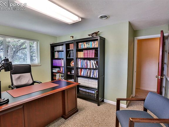 Beautifully located close to Garden of the Gods Park, hiking trails and nestled close to the mountains. Nicely landscaped with colorful flowers, mature trees, and green grass. Brick home on a big corner lot. The garage has been renovated into a home office and has a separate entrance. Main-level kitchen with dine-in area. Enjoy mountain views from the front porch!