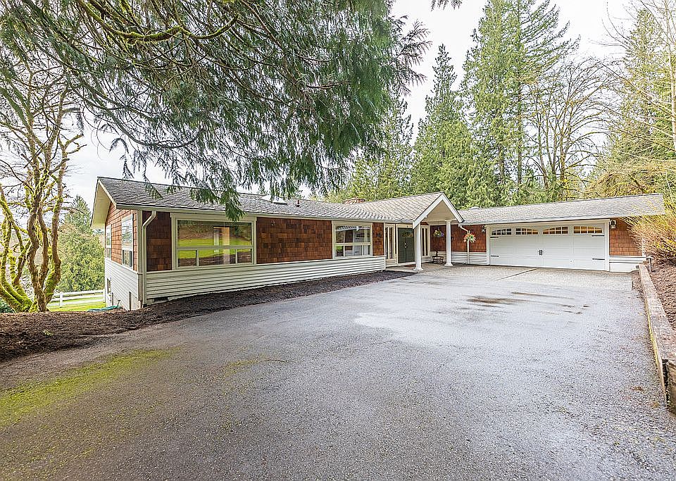 Secluded with small town feel and privacy yet close to major cities. Serene mountain view over pastures and trees. Trails and hiking steps away. Main floor of house has a main bedroom with bathroom, and two other large bedroom's, bathroom, living and dining rooms overlooking the property, spacious kitchen with nook, laundry room and large entry way. 2 car garage. Beautiful 5+ stall cedar barn with paddocks as well as other horse shelters, paddocks and pastures. Large shop. Partially updated basement with MIL type setup including kitchenette, bedroom, office, bathroom, large living area and private patio. Updated wood floors and carpets, bathrooms, paint and trim.