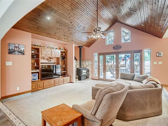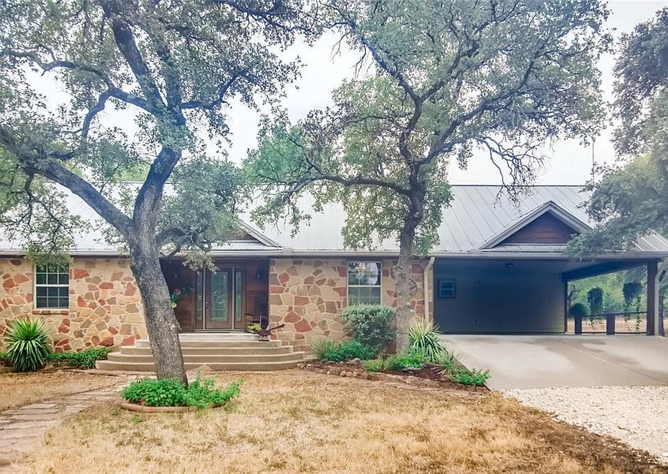 Gorgeous pool home with 3 bedrooms, 2 baths, on a huge 5 fenced acres in Georgetown! Stunning property with amazing wildlife, shade trees, and an outdoor rainwater collection system. Home highlights include a spacious, open floorplan, detached three car garage and 2 car carport, and backyard entertaining deck/patio area. Gorgeous living room with arched pine paneled vaulted ceiling, huge built-in entertainment center, wood-burning fireplace, and french doors that open to the back patio. Open floorplan flows into the spacious dining area, complete with modern pendant lighting and beautiful backyard views. Kitchen has wood laminate flooring, Corian countertops, stainless steel appliances, light wood cabinetry, and breakfast bar. Expansive master showcases built-in shelving, his and hers walk-in closets, and private access to the back deck. Backyard oasis is the perfect space for entertaining with a wrap-around wood deck, tiled patio, and above ground pool