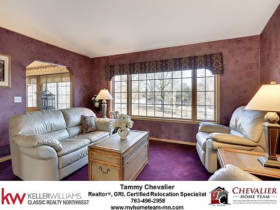 Custom built 1-owner, One-Story Rambler on 2.5 Acres with beautiful wooded & private lot backing to pond. 3 Bedrooms/3 Bathrooms/Oversized 3-car finished & heated garage. Gorgeous main floor laundry. HUGE kitchen boasts oak-raised panel cabinets with pantry & center island, built-in appliance garage with TV cove (TV stays). Finished lower level walk-out to patio, stunning built-in entertainment center surrounds gas fireplace, plumbed for wet bar. Home is solar orientated on lot with loads of windows. Beautiful landscaping & perennial gardens. Shed stays with property as does some of the landscaping tools. Contact us for more information: Tammy Chevalier is the LISTING AGENT at Keller Williams Classic Realty NW 763-496-2958.