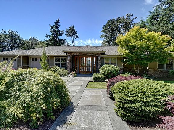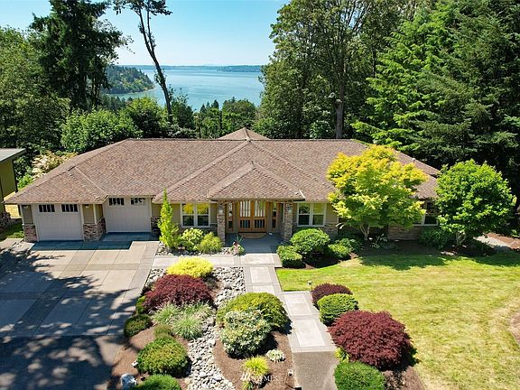 Stunning Custom Built One Owner Home Sitting on .27 Acre! Spectacular Sound Views from both floors, 2 Kitchens, 2 Laundries, Rounded Corners, Central Vacuum, French Doors, Gourmet Chef's Kitchen on Main Floor w/Pantry, Gorgeous Counters & Cabinetry, Gas 6-Burner Range W/Pot Filler, High Ceilings, Generous Primary Suite W/Coffered Ceiling & Recessed Lighting, Primary Bath W/6 Shower Heads & Jetted Tub Plus Heated Floor. Primary has French door to the Deck. ADU on the Main Floor with zero stairs. Wine Cellar is downstairs, Storage Galore, Home has built-in Sound System. Fabulous Home with All Rooms Soundproof! 4 Car Garage- Fully Finished & Painted, Quiet Garage Doors, Built-In Storage Cabinets-Too Many Amenities to List-Motivated Seller!
