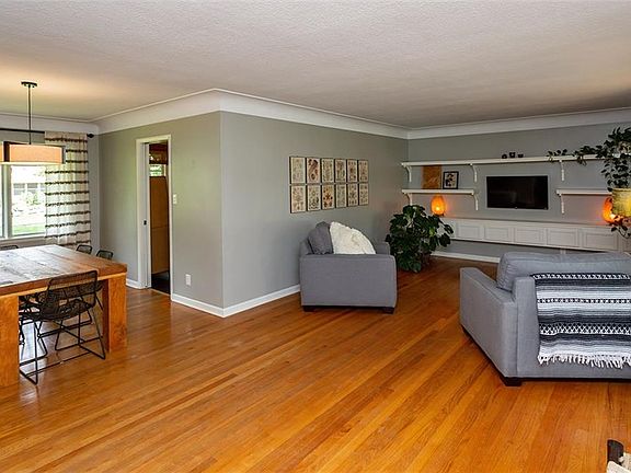 So many updates to this mid-century ranch that we can't list them all! Original hardwood floors in the front great room and bedrooms. Large windows throughout. Cove ceiling in living and dining rooms. Shelves and built ins in living room. Kitchen has been nicely updated with stainless steel appliances, gas stove, and extra character with glass knobs and backsplash. New flooring in kitchen to family room. Family room includes fireplace, built ins, shiplap ceiling, and access to garage and backyard. All bedrooms are good sized with great closet space. Main bath completely updated. Vanity was preserved with some of the original design. Updated half bath. The basement is huge and unfinished but so clean and the sellers just installed brand new flooring. New furnace, AC, humidifier and water heater 2018. All appliances stay. All tv's and mounts included. New vinyl siding, gutter leaf guards, some new windows 2018. Two car attached garage. Large yard. Featured in Beaverdale home tour 2018.