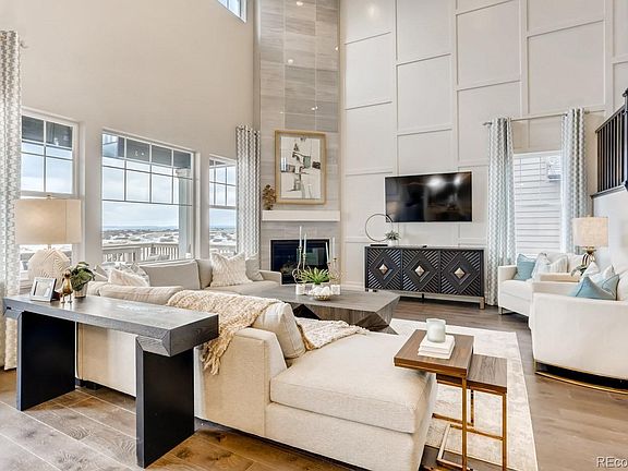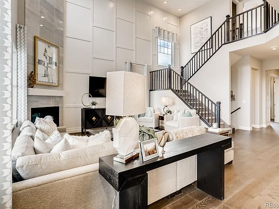Brand new home available end of May, 2022 in Castle Rock's newest community, Macanta! This extremely popular floor plan features 20' ceilings in the great room, hearth room with double sided fireplace and massive kitchen with tons of counter top and cabinet space and bright garden level basement. The interior finishes in this home are stunning with light gray cabinetry throughout, hardwood floors thorughout main living area, 2 fireplaces, quartz counter tops in the kitchen, subway tile backsplash, and much more. Kitchen features stainless steel appliances including gas cooktop, range hood, microwave/oven combo, 42" cabinets, and eat around island. Amazing location on a cul de sac, corner lot and backing to dedicated open space. Photos are model only and subject to change. Purchase price is tied to using the sellers preferred lender