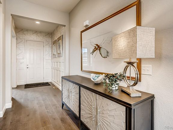 Brand new home available end of May, 2022 in Castle Rock's newest community, Macanta! This extremely popular floor plan features 20' ceilings in the great room, hearth room with double sided fireplace and massive kitchen with tons of counter top and cabinet space and bright garden level basement. The interior finishes in this home are stunning with light gray cabinetry throughout, hardwood floors thorughout main living area, 2 fireplaces, quartz counter tops in the kitchen, subway tile backsplash, and much more. Kitchen features stainless steel appliances including gas cooktop, range hood, microwave/oven combo, 42" cabinets, and eat around island. Amazing location on a cul de sac, corner lot and backing to dedicated open space. Photos are model only and subject to change. Purchase price is tied to using the sellers preferred lender