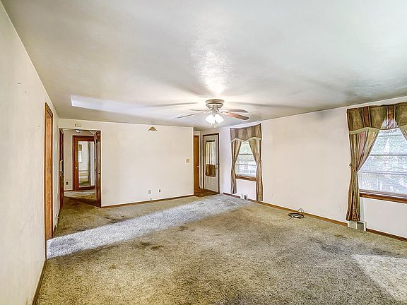 Beautiful country setting in Clark Shawnee School District yet close to all the city conveniences! Spacious Cape Cod situated on 1.16 acres with 3 attached garages (all have openers and there is separate attic space for additional storage). Main floor has large living room, kitchen, dining room, breezeway with laundry, 2 bedrooms, full bath and tons of closets. Second floor has 2 large bedrooms plus an additional full bath. Walkout basement has tons of potential for additional living/storage space. Updates include: Complete Tear Off Roof (2023), Rebuilt Chimneys (2023), Hot Water Heater (2015), Updated Electric Panel (2013), HVAC (2009). Don't miss out on this opportunity to make this home your own!!