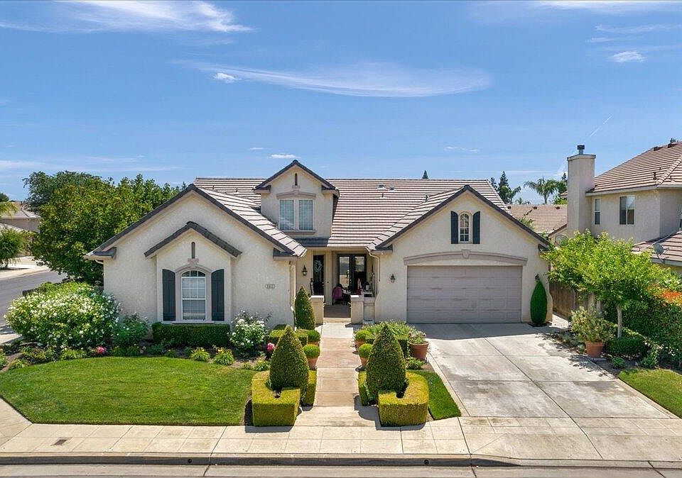 An original Model home on a corner lot in an esctablished Clovis neighborhood.Looking for a home that's truly move in ready? This is it. Upgrades will not disappoint. Gorgeous formal dining room with wood wainscoting, crown molding and glass french doors to front Courtyard. Home has open floor plan with centrally located livingroom, illuminated by windows, breakfast nook to open kitchen plus granite breakfast bar. Kitchen also includes Built-in appliances like gas cooktop, double ovens, built-in refrigerator, excessive cabinets and and custom tile floors and backsplash. With guests or family in mind there's a beautiful Jack and Jill bath between 2 of the bedrooms. The den or 4th bedroom option has its own full bath as well. The oversized Owner's suite has crown molding, 2 closets, jetted tub, walk in shower and gracious vanity space to complete the suite. Conveniently located is a Indoor laundry room with generous cabinets and sink. Home includes a split 3 car garage for your special storage needs. The lush backyard with covered patio welcomes guests as you entertain.