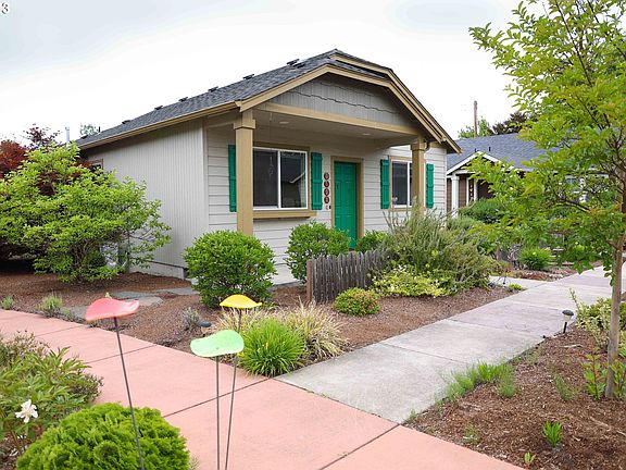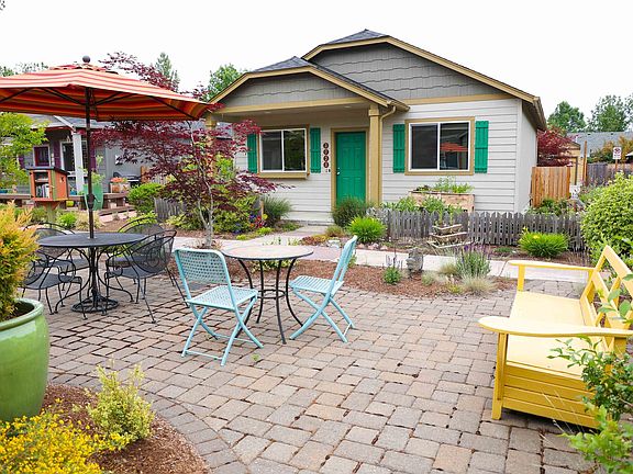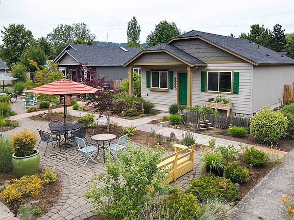 Welcome to the Amazon Cottages community, where your own little private lane ends right at your cottage! Come and experience the inclusive and friendly atmosphere of this inviting neighborhood. This charming, energy efficient home boasts 10'Ceilings, Ductless heating/cooling and an inviting open-concept living room & kitchen combination w/laminate Floors. The 2nd bedroom has brand new LVP flooring. Primary bedroom has newer carpet. The bathroom is adjacent to both bedrooms and has a private entry from the primary bedroom. This home also has indoor laundry/utility room with an attached garage and a south facing porch area with raised beds. The communal courtyard is a peaceful oasis with a water feature, native plants, paver paths and patio. Our pocket neighborhood is conveniently located near south Eugene's Amazon trails, dog park, shopping, restaurants. We invite you to join this unique neighborhood and become part of this incredibly welcoming community. Open House 1-3 pm Sunday 6/11