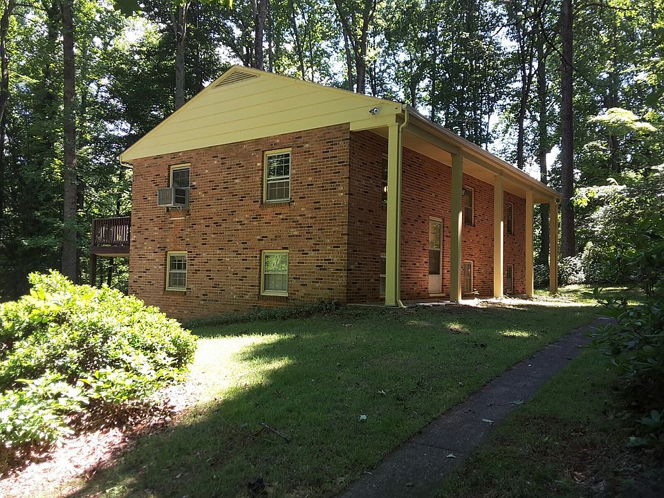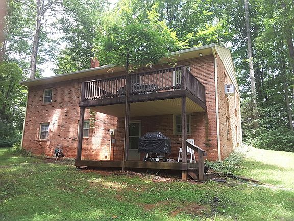 Lots of privacy and shade on this beautiful mostly wooded 5 acre plot. The property borders Falling Creek in Bedford County with a large vegetable garden and fruit tree space. The well built brick split foyer home is completely finished on both levels. Features a second kitchen on the first level and a sturdy deck at each level. Electric baseboard and woodstove heating. One window air-conditioner easily cools the entire house. Laundry on the first level. 448 sq ft. detached workshop/storage building. Contact owner at 434-610-2952.