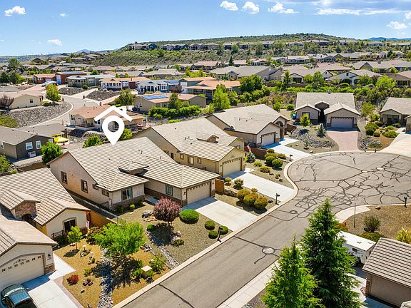 Take a look at a newer build & spacious 4-car garage in Willow Hills Sub. This well kept open floor plan with charming & welcoming front porch entry has all the privacy located on cul-de-sac with views of Bill Williams range, Granite Mtn. & peek-a-boo views of Granite Dells. Gorgeous screened-in covered back patio is located off great room & formal dining for easy access. Newer painting in some rooms, all window cov. replaced. Great rm has gas fireplace & is open to eat-in kitchen with island, stainless steel appliances with granite countertops flanked by Espresso stained cabinetry. Separate bedrooms has split plan from primary & gives everyone their own living space. Primary has snail shower, walk-in closet, dual vanities & security giving access to screened-in patio. Text to show