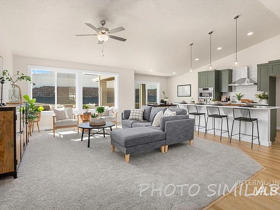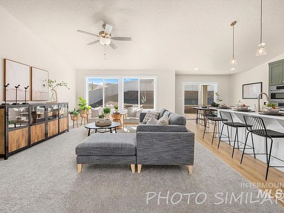 The Shoshone is a single-level home with split bedroom design features 3 bedrooms and 2 baths w/ a 3 car garage. This home is a top favorite. Located in Fruitland on a large .23 acre corner lot. The extra room is excellent for an office/craft room. The kitchen features our biggest island and has a huge pantry. Enjoy this new home highlighted with eco-friendly features and smart energy standards including 13 SEER air conditioner, stainless whirlpool appliances, High efficient gas furnace, and a tankless water heater. Overall, the Shoshone is a well-executed floorplan with a great entertaining area. Photos are similar/not the actual home.
