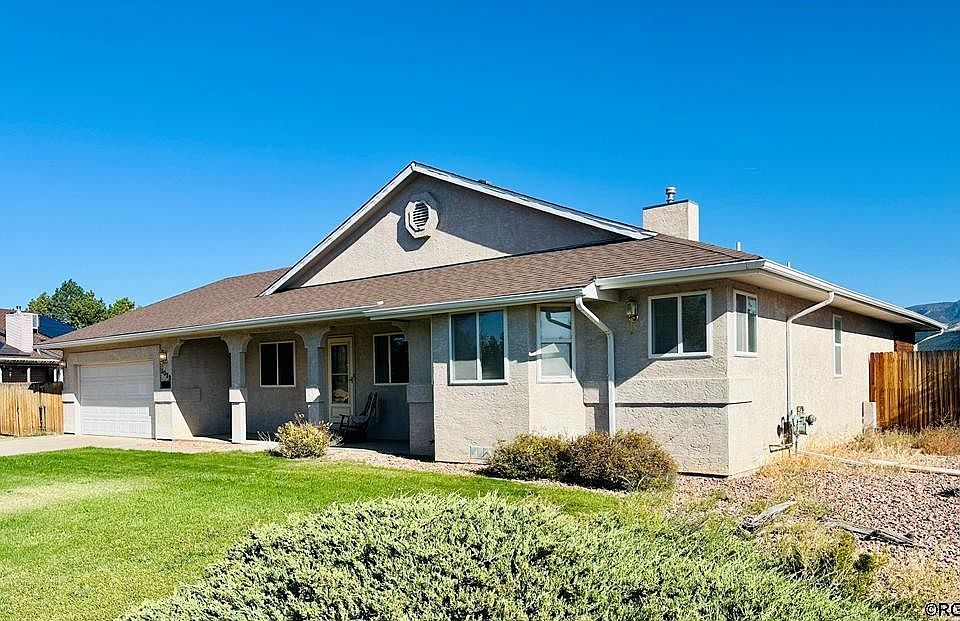 Welcome to the LAND OF THE SUNRISE in the distinguished Seven Arrows Subdivision. Step inside this spacious 1700 plus sq foot rancher and the first thing you'll notice is the view from the back patio doors....STUNNING! Imagine being hypnotized by the flickering flame of the fireplace in the living room as snow flurries fall outside...or on those warm days, open up those patio doors and incorporate the outside into your living space and again, enjoy the view! Make the Lookout Point your meditation spot and don't miss those sunrises!! This desirable 3-bed, 2-bath, split bedroom design offers an abundance of privacy. Master bedroom includes ensuite bath and large walk-in closet, as well as a second set of patio doors with a view. Very large second bedroom with tons of closet space. The kitchen is captivating, with warm smoked hickory floors, a breakfast nook, tons of natural light and potentially a charming little wine or coffee bar area. Large covered front porch and also a sizeable, covered patio in the back for outdoor entertaining or relaxing. Like to tinker in the garage??...You'll love this spacious heated garage with a huge storage area and mop sink to boot! Side drive access and RV storage. Fenced-in half acre lot with views of Four Mile Creek Area and the majestic mountains, not to mention...a sunrise that will make you think you're in a dream! Check it out today and make this magical piece of Colorado yours!