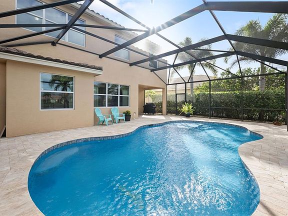 Stunning 4-bedroom, 3.5-bath pool home with expansive lake views, located in a gated community. This home features a screened pool, 3-car garage, and a spacious open kitchen with custom wood cabinets, stainless steel appliances, and a double oven. Enjoy the bonus loft, perfect as a 5th bedroom, wood-look tile flooring, and walk-in closets throughout. The private fenced yard offers tranquility, while the paver driveway and travertine patio add to the home's charm. Impact windows for added security and outdoor lighting to create the perfect outdoor ambience. Community features include: Clubhouse with amenities that include: pool, gym, pool table and ping pong.