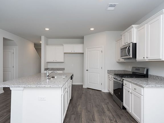 The Elle floor plan offers plenty of space with room to grow. Featuring a first floor owner's suite with generous bath and walk-in closet. The kitchen boasts a large island with room for seating and opens to the casual dining area and spacious family room. Granite countertops, 36" painted cabinetry, stainless Whirlpool appliances, and beautiful laminate wood flooring throughout the main living areas all included! There is also a wonderful flex space with French doors on the main level that could be a dedicated home office or a formal dining room. Sliding glass doors off the dining area lead to the rear covered porch for added outdoor living space. Upstairs offers large secondary bedrooms, two full bathrooms, plus an expansive secondary living area. This is America's Smart Home! Each of our homes comes with an industry leading smart home package that will allow you to control the thermostat, front door light and lock, and video doorbell from your smartphone or with voice commands to Alexa. *Photos are of a similar Elle home. (Home and community information, including pricing, included features, terms, availability and amenities, are subject to change prior to sale at any time without notice or obligation. Square footages are approximate. Pictures, photographs, colors, features, and sizes are for illustration purposes only and will vary from the homes as built. Equal housing opportunity builder.)