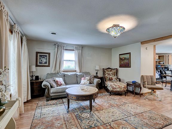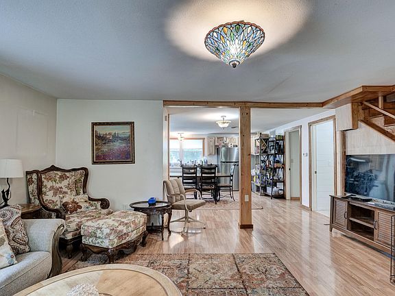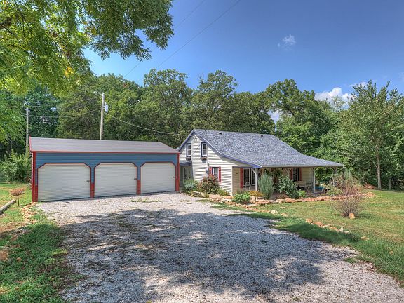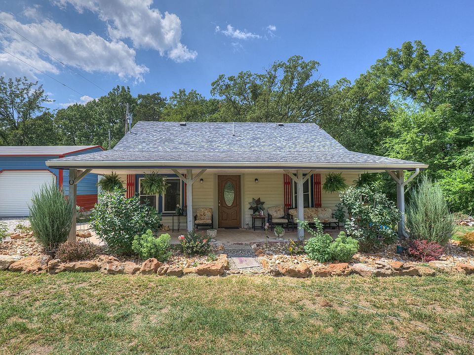 Beautiful 4 bed, 2 bath farmhouse in a quiet Carl Junction neighborhood. Located on almost half an acre with a 3 car garage, this property features many updates. Within the last 3 years the home has received a NEW roof, garage, shed, concrete pad, and heat pump! The curb appeal has been enhanced with fresh landscaping around the covered front porch. Main level features a nice open floor plan with the living room flowing into the eat-in kitchen with stainless appliances and a laundry closet. Off the kitchen is the primary suite where the bathroom has been remodeled with a new vanity, light fixture, and shiplap walls. The 2nd bedroom on the main floor has a cedar wood accent wall and extra storage space. Upstairs features 2 more bedrooms, a built-in desk in the hallway, and a full bathroom. Outside, you are surrounded by the woods and are within walking distance to Center Creek. Property includes a nice storage shed. Call to schedule your tour today!