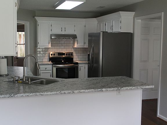 This is a remodeled home with an updated kitchen, beautiful white cabinets, new counter top and a subway tiled back splash. All new stainless steel appliances have been placed in this beautiful home. New hardwood and tile have been placed in the home as well as new light fixtures. The home features 3 bedrooms, 2 bathrooms, great room, eat in kitchen, laundry room, study and a sun room. The master bedroom and great room both feature tray ceilings. There is a beautiful bricked fireplace with gas logs in the great room. The air conditioning/heat unit was replaced in 2011. The roof was replaced in 2013. This has been a well maintained home. This home features newly painted walls, trim, ceilings, garage and the exterior of the home with a light color. The location is perfect for easy access to Interstate 65.