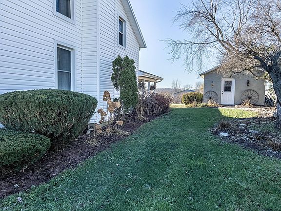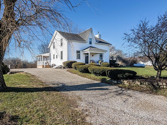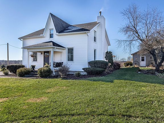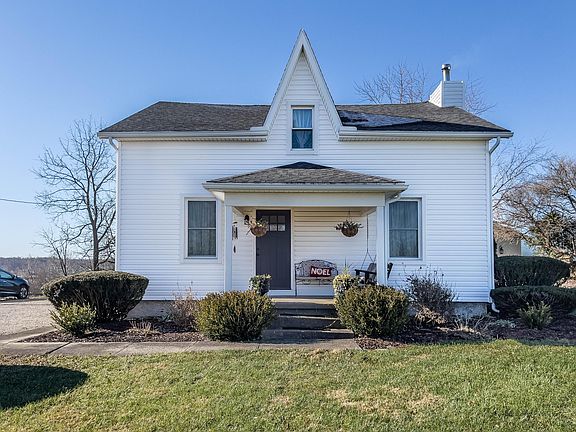 Perched atop hillside, with amazing views, you will find this completely updated home that shows like a model home. This hard-to-find property sits on .75 of an acre and has several features that will allow you fall in love! The property is located in the Triad School District and offers the new owners 4, possibly 5 bedrooms. The kitchen is a must see and offers things not found in most older, farm house homes. The kitchen has white cabinetry, a brick floor (old Chicago bricks), cathedral ceilings and a center island. Both the range and refrigerator stay with the home, along with the washer and dryer in the nearby laundry room. The kitchen has a window over the sink that has magnificent views looking West. The kitchen also features sliding doors that takes you out to a private covered porch area and to a 16x14 outbuilding (with electric) and a 12x10 lean to. The home has a flowing, main level floor plan where the kitchen leads you through a large open space area, where current owners have a piano, and then into the large dining room and living room. The living room, with an open staircase, and both the dining room and open area, all have hardwood flooring. A big surprise for those looking to find the perfect home, is the updated bathroom featuring a double sink vanity. Finishing out the main level is the 5th bedroom or office area. Upstairs there are 4 bedrooms and a large landing area with usable living space. The entire second level has all new carpeting throughout. The home offers a partial basement that is great for storage, a covered side porch, a covered front porch and the driveway large enough for additional car parking. Other updates include the roof (2020), windows main level only (2020) and furnace (2015). The home has both R19 and blow in insulation that has been installed in the last 5 years. The location is just minutes away from US Hwy 36, State Route 245, State Route 296 and is only 19 minutes to the Honda Plant in Marysville.