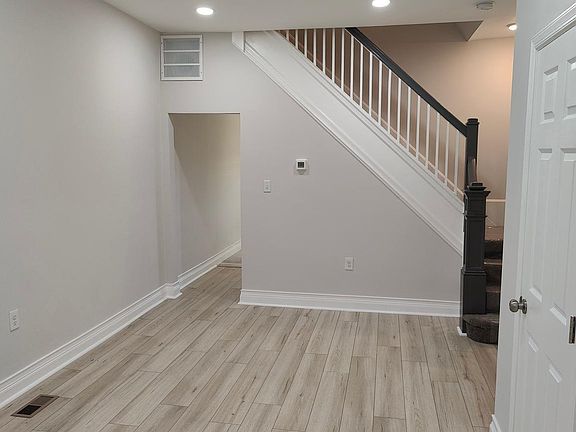 A beautifully renovated townhouse with a porch across from a historical park. Completely renovated, and everything was replaced throughout. Freshly painted over, new wood floors, large tiles, and carpet. Newly remodeled kitchen with cabinets and stainless steel appliances. Remodeled bathrooms on each level, renovated bedrooms with access to the rear deck. Finished basement with full bathroom and storage. Home next door is also currently being renovated.